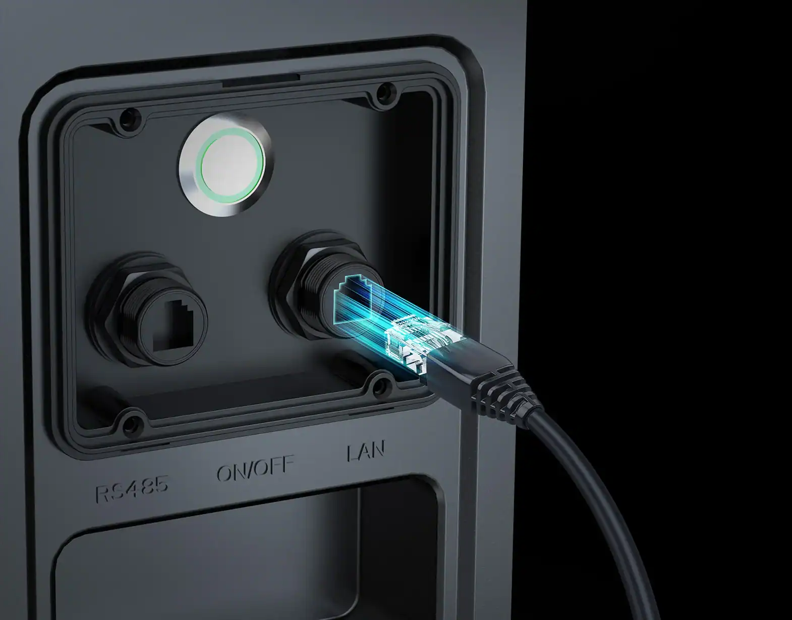 De Venus E 3.0 is uitgerust met een speciale LAN-aansluiting voor realtime, bekabelde communicatie met je energiesysteem. In vergelijking met Bluetooth of Wi-Fi biedt LAN een snellere reactie, meer stabiliteit en geen signaalstoringen, zelfs in drukke of complexe netwerken.
